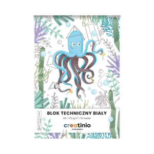Blok techniczny A4 170 g to praktyczny wybór do malowania, rysowania oraz innych prac plastycznych. Zawiera gładkie, białe kartki odporne na wielokrotne ścieranie gumką, co pozwala na swobodne poprawki bez pogorszenia estetyki pracy.
