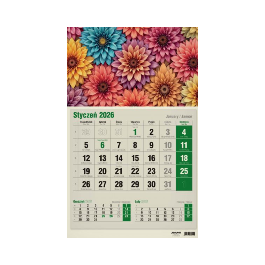 Kalendarz jednodzielny na 2026 rok sprawdzi się tam, gdzie nie ma miejsca na kalendarz trójdzielny, a jednocześnie ważny jest szybki podgląd poprzedniego i kolejnego miesiąca. To praktyczne rozwiązanie do biura i domu.