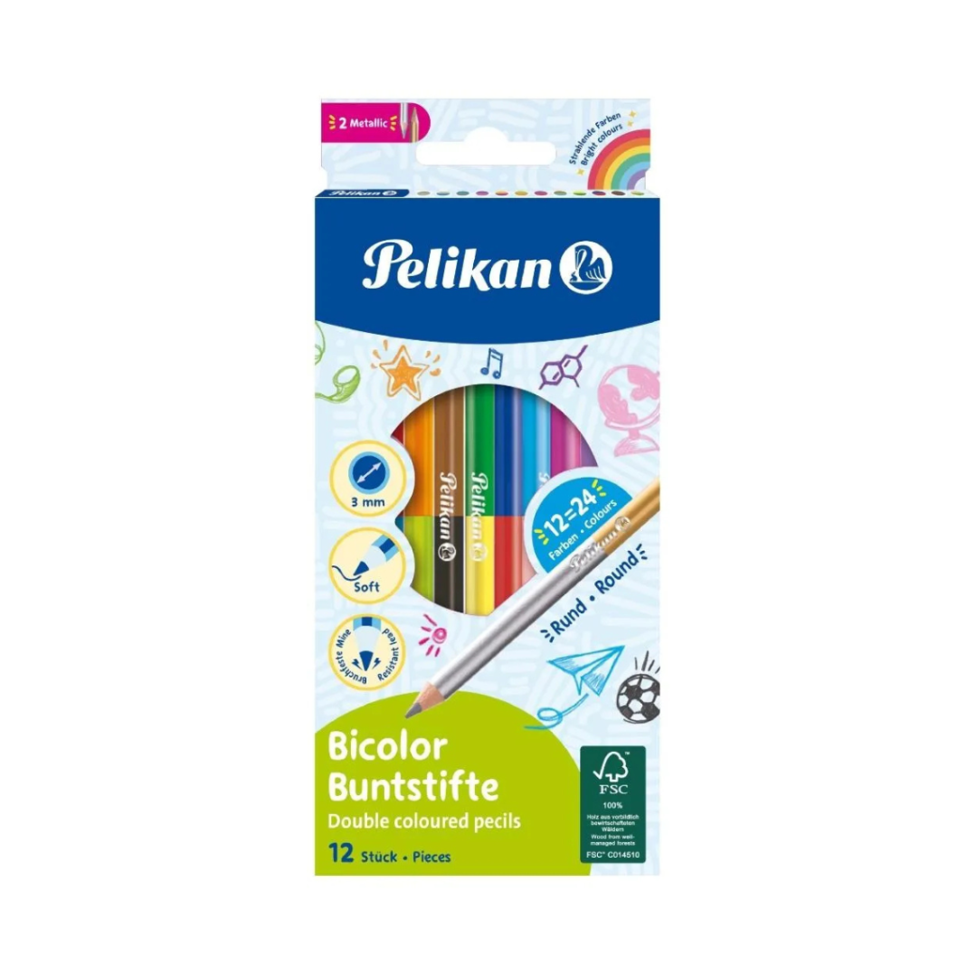 Kredki dwustronne Pelikan to idealny wybór dla dzieci, uczniów i wszystkich miłośników rysowania. Sprawdzą się w zarówno szkole, przedszkolu, jak i w domu podczas wykonywania prac plastycznych. Dzięki dwóm kolorom w jednej kredce, zestaw 12 sztuk oferuje aż 24 intensywne odcienie, w tym złoty i srebrny, które pozwalają tworzyć wyjątkowe, błyszczące detale.